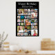 Crea fácilmente una divertida foto recuerdos poster de fotos de cumpleaños para mostrarla en un fiesta o dar como regalo conmemorativo de keepsake utilizando esta plantilla de collage de fotos con 33 imágenes cuadradas personalizadas con el texto de tu personalizado (el ejemplo muestra FELIZ NOMBRE DE CUMPLEAÑOS y texto opcional adicional) en tu elección de colores. OPCIONES posters: El ejemplo se muestra en el tamaño de 24x36" en el papel de valor (mate): en la página de pedidos hay disponibles otros tamaños y calidad de papel o lienzo o transferencia del diseño a otras opciones de producto. ASISTENCIA: Para obtener ayuda con la modificación o personalización del diseño, el cambio de color, el cambio de tamaño, la transferencia del diseño a otro producto o si desea coordinar elementos, póngase en contacto con el diseñador ANTES DE PEDIDOS a través de la pestaña del MENSAJE de charla de Zazzle, o envíe un correo electrónico a makeitaboutyoustore@gmail.com.