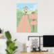 Un niño saludando mientras caminaba por un sendero. Este diseño parece realmente efectivo en este Poster