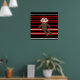 Póster Sentado del Chica de mono negro rojo a rayas en bl