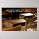 Una vieja escuela con la frase "SIT DOWN, HUSH UP and HOLD ON... esta NO es la clase de tu padre"