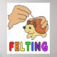 El diseño de la siembra muestra un par de manos cortantes haciendo un erizo de fieltro con la palabra "Felting" debajo en colores arcoiris. ¡Un diseño divertido para los aficionados!