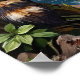 Este cuadro cautivador presenta un mapache, un "Sentinel forestal", encaramado en un tronco al lado de una cascada, con una mirada inquisitiva. La escena está ubicada en un bosque vibrante con una poderosa cascada y un arroyo que corre por debajo. El texto "Cute pero salvaje" está pintado sobre el fondo rústico de madera, añadiendo un toque de personalidad a la pieza. Las gruesas pinceladas texturadas le dan un toque escarpado pero encantador a este retrato de bosque.