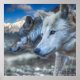 Los lobos grises macho y hembra alfa se mantienen inmóviles en la naturaleza invernal, testificando como "Centinelas" por un breve momento en el tiempo, recordando su viaje diario y lo que vendrá del próximo paso en la nieve antes de seguir con la caza eterna.