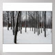 Un estrado de árboles desnudos está vigilando el campo, cubierto de nieve.