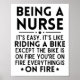Divertido diseño de mordaza de enfermera con una cita que dice "Ser enfermera es fácil, es como andar en bicicleta, excepto que la bicicleta está en llamas, estás en llamas todo está en llamas" perfecto idea presente para mujeres y hombres en cumpleaños, día de la madre, día del padre, semana de enfermeras nacionales, graduación... ¡Genial para orgullosa enfermera registrada, profesional, estudiante de enfermería o futura enfermera!