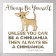 "Siempre seas tú mismo. A menos que puedas ser un Chihuahua, entonces siempre serás un Chihuahua". Este dicho gracioso con un dibujo gráfico de un perro chihuahua beige claro/marrón.