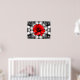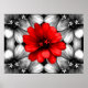 Una preciosa flor de margarita roja en el centro, en medio de un collage de flores de margarita blancas y negras. Atrévase a ser diferente.