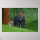 En esta emocionante imagen, un poderoso gorila de respaldo silvestre se alza en la exuberante hierba verde, con la mirada fijada hacia delante con un árbol solitario en el fondo.