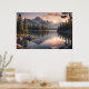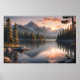 Sumérjase en la tranquilidad con este poster impresionante, que capta una serena puesta de sol sobre un lago montañoso prístino. Los tonos cálidos de la puesta de sol se mezclan maravillosamente con las aguas tranquilas y la silueta de pinos majestuosos en primer plano. Perfecto para añadir un toque de serenidad a la naturaleza a cualquier espacio.