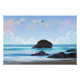 Tranquilidad, paisaje tranquilo con nubes suaves y una playa de arena.