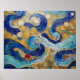 Una dinámica interacción de tonos azules agitados y amarillos tonificantes cautiva el ojo. La composición parece una representación abstracta de una noche estrellada mezclada con olas oceánicas. Los patrones intrincados agregan profundidad, mientras que las salpicaduras de rojo proporcionan un contraste focal.