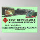 Desde www.railphotoexpress.biz; Sus artículos viajarán en línea rápida y fiable a través del servicio ferroviario. Railway Express es (era) a nivel nacional. Los trenes de pasajeros que paraban en todas las ciudades y pueblos transportaban artículos de la Agencia Ferroviaria Express. Antes de la época del Sistema Interestatal de Autopistas, los trenes de pasajeros eran el único enlace al mundo exterior para los paquetes de correo de EE.UU. y de ferrocarril Express. El acuerdo de Railway Express con los ferrocarriles era que proporcionaban espacio y coches terminales y que los transportaban a expensas de ellos; REA pagaba sus propios gastos y dividía el beneficio entre los ferrocarriles en proporción al tráfico. El servicio expreso en Canadá y México fue operado directamente por las compañías ferroviarias. Los ingresos exprés se mantuvieron en niveles rentables hasta la década de 1950, en parte debido a los aumentos de las tasas. El volumen expreso cayó sustancialmente después de la Segunda Guerra Mundial. Los ferrocarriles empezaron a ver el servicio expreso como un negocio caro. El 24 de agosto de 1912, el Congreso aprobó una ley por la que se establecen tarifas postales para el correo de cuarta clase y se establece el servicio de correo de paquetería. Esto también se llevó en Trenes de Pasajeros en el correo de EE.UU.