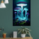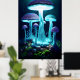 Este encantador poster capta la mágica esencia de un grupo de hongos, a diferencia de cualquiera que hayan visto antes. En el corazón de esta escena hipnotizante se encuentra la vibrante interacción de colores, donde las púrpura profundas y místicas se mezclan perfectamente con brillantes notas de cian. Cada hongo, meticulosamente detallado, parece palpitar con una luz etérea, lanzando un resplandor sereno que ilumina la oscuridad que lo rodea.