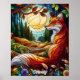 Este diseño vibrante reproduce el aspecto del vidrio manchado y cuenta con un bonito zorro rojo que camina entre flores.