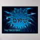 Texto oscuro que dice "Shalom" (hebreo: paz) superpuesto sobre una imagen fractal azul más clara. Añade tu propio texto adicional.