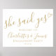 Póster She Said Yes Engagement Party Gold Welcome Sign