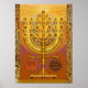Entrar en las Paredes Celestiales de las Letras Meditación en las letras hebreas no es tanto una actividad humana como un acto sobrenatural, en el que derribamos las barreras de nuestra existencia natural y llegamos al mundo divino. Cada carta es una prenda de vestir que nos beneficia, por lo que la energía de creación que albergan será inteligible para nosotros. Concentrándose en las letras, sus formas se disuelven y se revela la Santidad en las letras. En la oración hebrea, una meditación extendida sobre las letras y sus combinaciones, las tallamos con aliento y las metemos en la boca en 5 lugares, para pronunciar cuidadosamente cada letra de las 5 familias. Los tallamos con el aliento, contemplando cada letra cuidadosamente, concentrándonos en el aliento que se exhala mientras se pronuncia. Los ponemos en la boca, meditando sobre el lugar en la boca con que se pronuncia la letra. Aunque el discurso en sí mismo involucra la conciencia de Binah, la pronunciación de las letras es una actividad automática, y por lo tanto, involucra la conciencia de Chochma. Con este ejercicio, el iniciado aprende a usar las cartas con la conciencia de Chokhma, y al pronunciarlas físicamente, vestirlas en Binah. Es a través de este ejercicio que aprendemos a usar las letras como Caminos de la Sabiduría. La boca habla, mientras el Espíritu provee los pensamientos. Renunciando a las cartas, la intimidad es como una antorcha, alimentada por Holiness. [Parafraseado del Santo Baal Shem Tov z"tzl, Aryeh Kaplan y Gutman Locks] "Tzohar ta'ase b'Teva" - Pon una ventana en el arca - Ilustra la palabra que a Noah se le dice que "ponga una ventana en el arca" - pero esta es la simple traducción. "Tzohar" significa "iluminar, dejar claro, presionar las aceitunas o secar la fruta al sol". La palabra "teva", que significa arca, también significa "naturaleza" y "palabra". Midrash dice que el Tzohar era una piedra brillante que contenía una chispa de la Luz de la Creación original, que fue dada por el Creador Antes del Tiempo a Adán y Eva cuando salían del Edén -estas ideas se tejen para significar "Iluminar la Palabra". La gematria de "tzohar" es de 295, que es el mismo valor numérico que "menorah" -mejorando el simbolismo de aclarar o iluminar las letras hebreas, especialmente cuando se revela lo perfectamente que se alinean con las ramas de la Menorah. "V'shemen ha tov tariq al sheva k'nei ha Menorah" - [las palabras en la cinta] significan "y verter el buen aceite en las siete ramas de Menorah" - que es el acto de anotar - Moshiach - Mesías. Cuando se combina con el hecho de que "tzohar" también significa presionar las aceitunas, la fuente del "buen petróleo" -la conexión se torna aún más pronunciada. Las letras aquí ilustran una línea continua de transmisión desde el más trascendental - Aleph - al más material - Tav. El Aleph de arriba reside en el nexo entre el infinito y el finito, donde la esencia pura indiferenciada empieza a dividirse en el "olam ha pirud" -el mundo de las distinciones, y donde el mundo de las diferencias se unifica en el Aleph y se fusiona con el trascendente. En consecuencia, la base de la Menorah es la parte más concreta y real de la imagen. Como se presenta aquí todo el alfabeto, todas las palabras de Torah, Talmud y Siddur [en realidad cualquier palabra hebrea] pueden permutarse del arreglo. Las letras azules son las primeras letras de las palabras de Ana B'Ko-ach, una meditación de 42 palabras profundamente mística del Siddur, compuesta de siete líneas, seis palabras cada una. Muchas oraciones, salmos y otras meditaciones judías se compusieron como acrósticos alfabéticos, es decir, cada verso empieza con una letra del Aleph-Beis, de Aleph a Tav. El rabino Bezalel Ashkenazi dice que organizar las oraciones y elogios con las 22 letras simboliza la terminación, y que el Creador es elogiado con todos los sonidos que somos capaces de pronunciar. Usando letras como peldaños de una escalera, nos conectamos Arriba a Abajo, para mezclar lo trascendental y lo inmanente, lo espiritual y lo físico, el abstracto y el concreto. De hecho, la gematria del "sulam", "escalera", es de 130, lo mismo que el "Sinaí", la montaña donde la Nube de Gloria tocó la Tierra. También hay 130 palabras en "B'rich Shemei", un pasaje del Zohar que se lee en el recibo de la Torah. Bereshis (Génesis) 28:12: "¡Y soñó, y he aquí! Una escalera fue puesta en tierra y su cima llegó al cielo; y he aquí, los ángeles del Creador ascendieron y descendieron sobre ella.