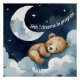Este osito de peluche personalizado que se puede dormir en el poster lunar es la adición perfecta a cualquier habitación infantil o infantil. La imagen adorable de un oso bebé durmiendo en las nubes le da una sensación de paz y tranquilidad. Con texto editable que dice "Shh...Sueños en progreso" y un lugar para el nombre del bebé, este poster puede ser personalizado para hacerlo verdaderamente único y especial para su pequeño. Haz que la hora de acostarse sea más mágica con este encantador poster que inspirará dulces sueños todas las noches.