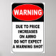Aviso: Debido a los aumentos de precio de las municiones no se espera una toma de advertencia