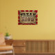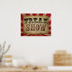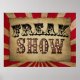 Cartel de poster de espectáculo de color freak con un espectáculo de circo retro con rayas rojas de carpa de circo vintage y luces de letras de imágenes marquesas. Gran decoración para un bar o una decoración de fiesta de Halloween.