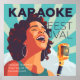 Cartel cuadrado del show fiesta de Karaoke. Huellas de arte en el festival discoteca de música. La gente canta canciones al micrófono. Plantilla de volante de eventos musicales con cantante. Diseño de banderas de tipografía de moda