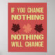 Si no cambias nada, nada cambiará -cita motivacional, tipografía roja con hojas.