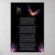 Este dibujo presenta el inspirador y motivacional poema "If" de Rudyard Kipling -un plan para la integridad personal, el comportamiento y el autodesarrollo de los hombres jóvenes que avanzan hacia la masculinidad. El fondo presenta un vibrante fractal de ave de fuego fénix y el texto está en la antigua tipografía inglesa. El fondo negro complementa a la perfección esta buena impresión de arte.