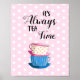 Póster Siempre es el té con tazas de té Fiesta rosado