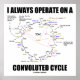 Muestra tu irónico sentido del humor del ciclo Krebs con este poster que presenta el ciclo Krebs (ciclo del ácido cítrico, ciclo del ácido tricarboxílico) junto con el siguiente dicho que hará que otros hagan una doble toma de la forma en que operas: "Siempre opero en un ciclo enrevesado". Clásico bioquímica geek poster del humor para cualquiera que opera en un ciclo enrevesado!