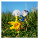 Fubby Poppetjes die sierlijk samen dansen en een romantisch actie beeld geven met kleurrijke narcissenbloem.