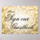 "Sign Our Wedding Guest Book" Wedding Reception Sign Gold Bokeh Lights