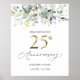 Cartel de bienvenida 25º Aniversario del Boda. Este diseño presenta un ilustracion acuático con hojas de eucalipto y vegetación. En la parte superior de la imagen - efecto verdoso confetti.