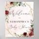 Póster Signo de bienvenida bohemia borgoña de Baby Shower
