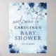 Póster Signo de bienvenida de Baby Shower azul acuarela d