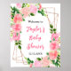 Póster Signo de bienvenida de Baby Shower con flores rosa