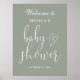 Este elegante guión verde sabio género neutro signo de bienvenida de ducha de bebé puede ser personalizado con toda su información especial de celebración. Diseñado por Thisisnotme©