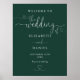 Este elegante signo de bienvenida de boda de escritura de corazón verde esmeralda se puede personalizar con su información en la tipografía de moda. Diseñado por Thisisnotme©
