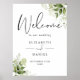 Póster Signo de bienvenida de Boda de follaje verde