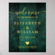 Este cartel de bienvenida de boda rústico de madera esmeralda puede ser personalizado con su información en elegante tipografía de oro. Diseñado por Thisisnotme©