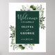 Póster Signo de bienvenida de Boda floral elegante verde