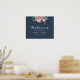 Este poster de bienvenida boda presenta flores y vegetación rosa color agua pintadas con elegantes fuentes blancas sobre un fondo azul marino. Este poster forma parte de una suite boda que incluye una invitación a la boda y muchos otros elementos esenciales para los bodas.