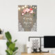 Madera rústica, encaje, luces y flores rosadas boda poster de bienvenida