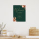Este elegante y rústico cartel de bienvenida boda floral se puede personalizar con su información en la tipografía de oro de moda sobre un fondo verde esmeralda. Diseñado por Thisisnotme©
