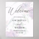 Póster Signo de bienvenida de Boda morado floral y caligr