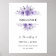 Signo de bienvenida morado Boda Nuestro elegante signo de bienvenida de boda le dará un toque bonito a su recepción para darle la bienvenida a sus huéspedes, perfecto para la moderna novia DIY. Esta plantilla es totalmente editable y le permite realizar personalizares con facilidad. Ahorre tiempo y dinero sin comprometer la calidad o el estilo al agregar su papelería.
