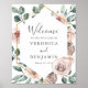 Dé a sus huéspedes una dirección agradable con nuestro boho rosa de bienvenida, que incluye eucalipto de color de agua verde y polvorientas guirnaldas rosas y elegante letra de estilo manuscrito.