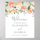 Bienvenido a sus huéspedes bodas con nuestro cartel de color melocotón y crema floral, con melocotón y crema floral. Personalice los detalles de su boda con un diseño sencillo y moderno y un elegante estilo de letra manuscrito.