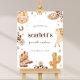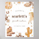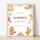 ¡Bienvenidos invitados al primer rodeo de tu niñita con nuestro encantador Primer Rodeo de bienvenida! Con su paleta de colores neutros y su tipografía clásica de personalizable, este cartel de boho prepara el escenario para una celebración divertida. El adorable diseño de la vaquera cuenta con un cactus, un caballo, gorras de vaquera y botas, rodeados de flores y acentos de estrellas. Guíe a sus huéspedes para que conozcan las festividades con estilo y cree un ambiente memorable para su pequeño día especial.