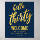 Plantilla de Signo de bienvenida de cumpleaños "Hello Thirty" de la Marina de Oro.
