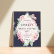 Bienvenidos a su ducha de novias con nuestro elegante cartel floral personalizado, diseñado para coincidir con nuestras invitaciones de la antigua Peonia. El diseño cuenta con un fondo azul de medianoche con peonías de acuarela de color rosa rubor y tu elección de palabras de bienvenida, mensaje personalizado y fecha de ducha.